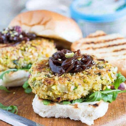 Make a mixture of chopped pistachio and oats and roll the burgers through it. Because the egg will have made it quite sticky it will be easy to get it to stick on the outside